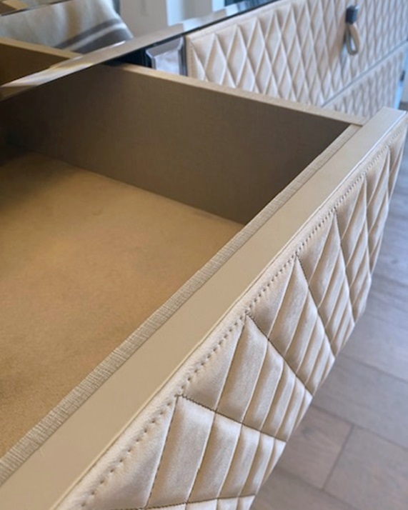 ・引出し前面:ミラー張り/ラッカー塗装/レザー張り