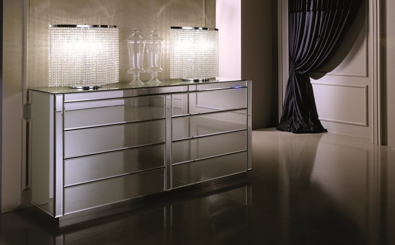 ENVYチェスト   w200×d52×h90cm/オールミラー張り(ナチュラルカラー)
